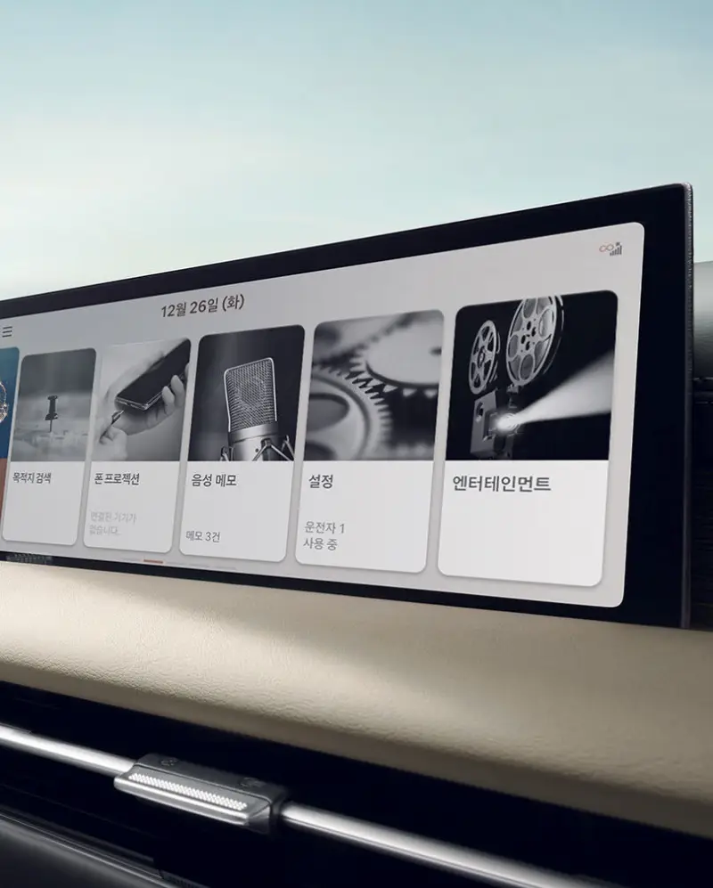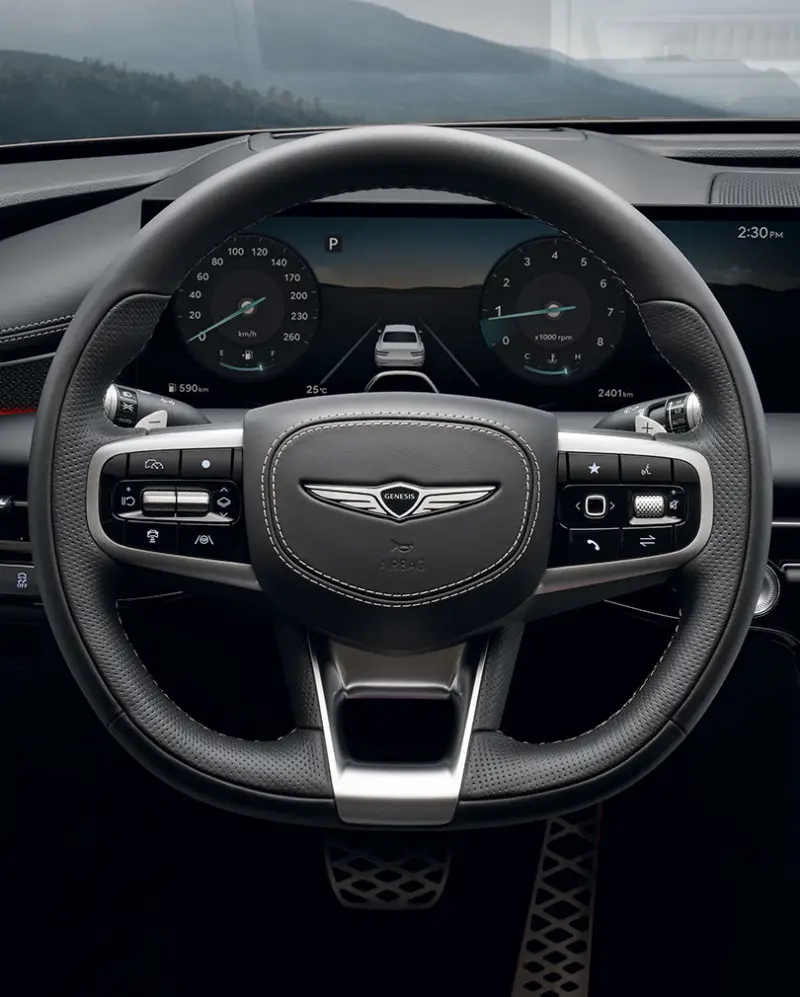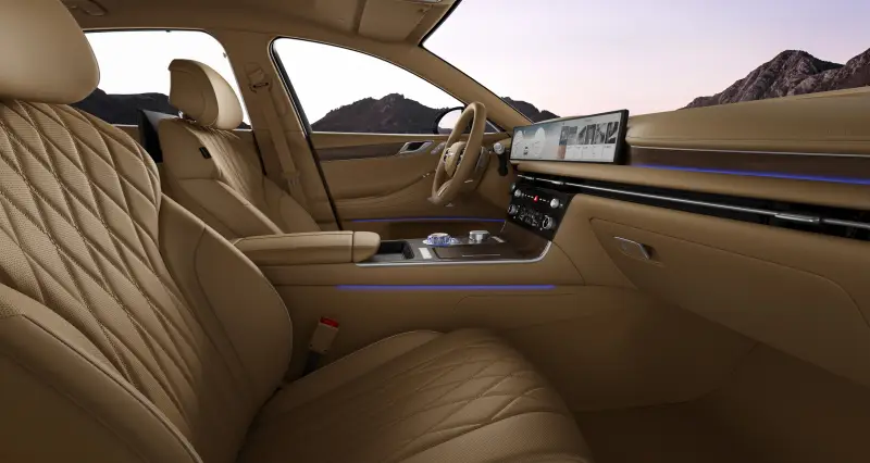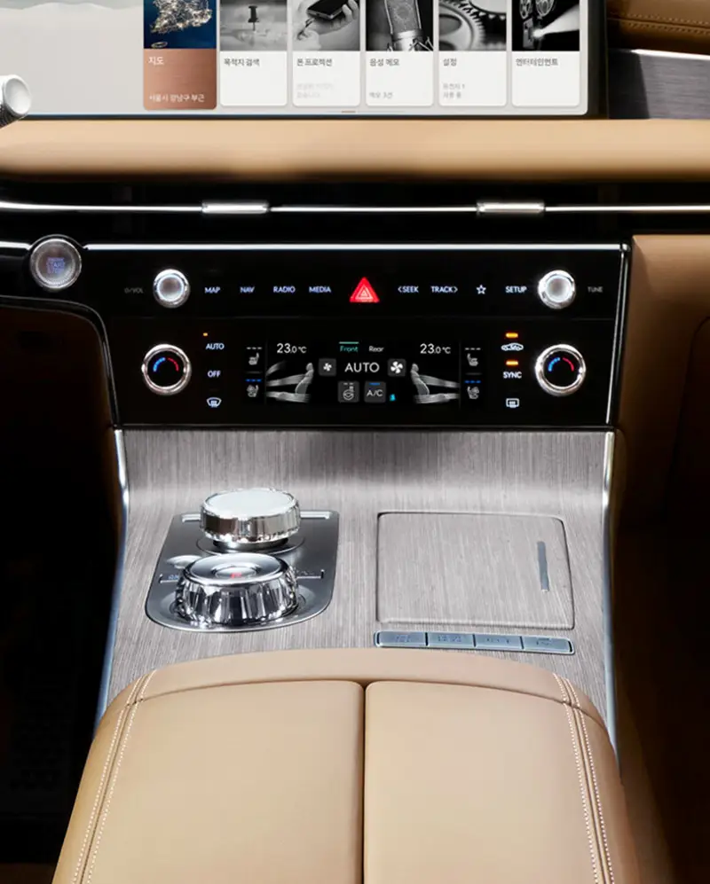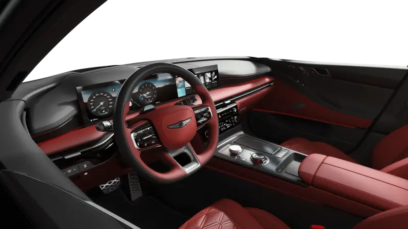 실내로 들어서면 제네시스 G80의 내부 디자인과 기술이 얼마나 고급스러운지를 바로 알 수 있습니다. 넓은 공간과 세심하게 디자인된 인테리어는 탑승자 모두에게 최상의 편안함을 제공합니다. 고해상도의 디지털 계기판과 인포테인먼트 시스템은 최신 기술의 집약체이며, 사용자 경험을 한층 더 향상시킵니다. 또한, Nappa 가죽 시트, 목재와 알루미늄을 사용한 고급 마감재는 럭셔리 세단의 기준을 한 단계 높여줍니다.